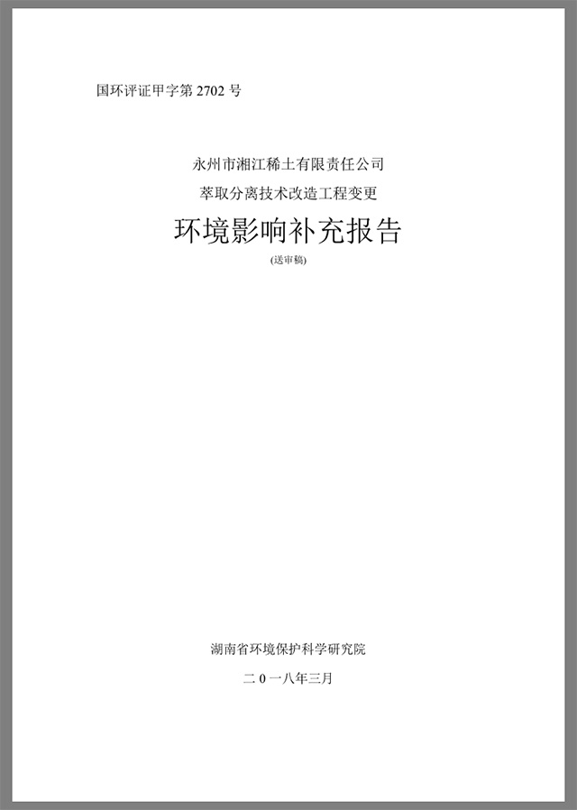 公示:永州市湘江稀土有限責任公司 萃取分離技術(shù)改造工程變更 環(huán)境影響補充報告