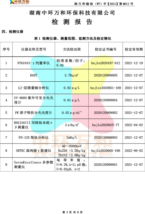 2021年度輻射信息公示-檢測(cè)報(bào)告