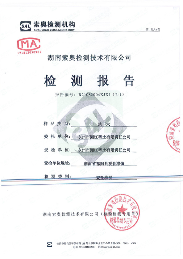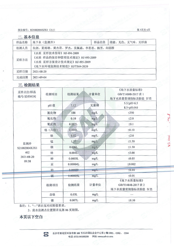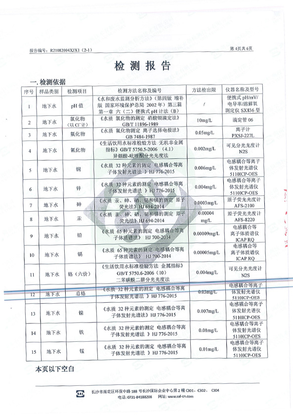 (地下水)檢測(cè)報(bào)告公示